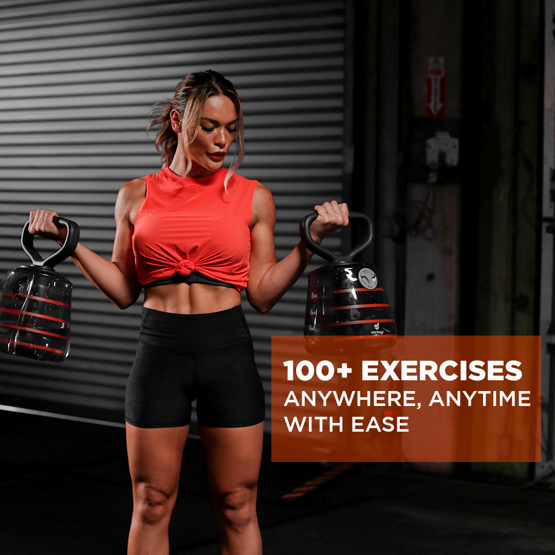 Replace your home gym and experience all the same benefits of the adjustable kettlebell, but with bonus THREADED CONNECTOR to connect into a hybrid barbell, adjustable up to a combined 36 lbs!