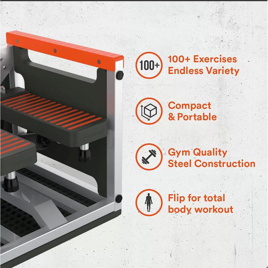 I found this after looking at only step machines to assist me workout without hammering on my joints (which have issues). It is solid and long-lasting, allowing me to workout while also enabling my more mobile and athletic husband to perform numerous types of exercises. It can be kept when not in use because it is reasonably small and roughly the size of a regular bedside table, which is a huge plus in my book. Really, I'm amazed. It is not weak in any way.